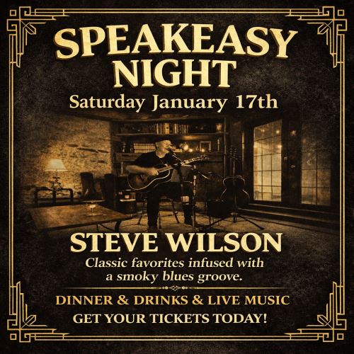 STEVE WILSON Live : Saturday January 17• a complimentary glass of bubbles.• A reserved seat for dinner during the show (6:30–9:30pm)$20 per person